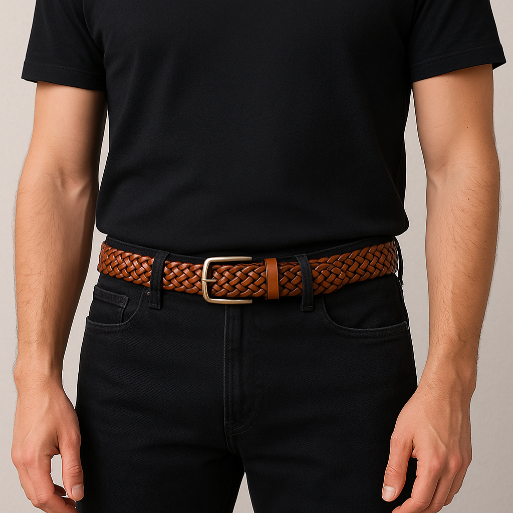 Fléttað leðurbelti með klassískri áferð og þægilegri, stillanlegri passform. Gert úr endingargóðu kúasplitleðri með slípuðum sinkspennu, það er hannað til að endast, með hreinni áferð sem klæðir upp eða niður.