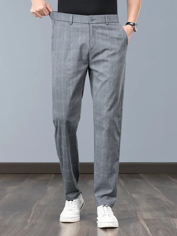 Ertu að leita að fullkomnum buxum fyrir fínni tilefni? Þessar slim-fit buxur með teygjanlegu mitti og rúmmótsmynstri bjóða bæði upp á stíl og þægindi. Gerðar úr þolnum, mjúkum efnum, gera þær öll önnur föt einföld í samanburði.