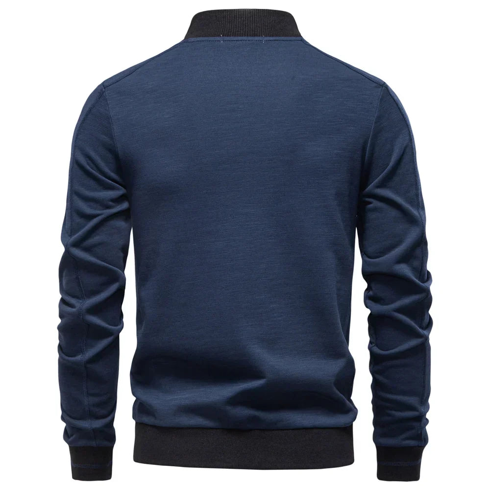 Nútímalegur íþróttabomberjakki með glæsilegri, lágmarkshönnun. Úr mjúkri efnisblöndu býður hún upp á létt þægindi og sportlegt yfirbragð en heldur samt hreinu útliti klassískrar bomberjakks.