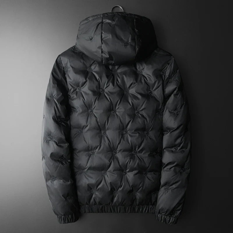 Þessi jakki endurdefinierar hita. Fyltur með premium hvítum öndunarfóðri, hann er léttur en samt kraftmikill gegn kulda. Vönduð, veggfóðruð hönnun heldur hita án þess að vera þungur, á meðan hettan og fallega passformin halda honum skarpum. Mjúkur, einangrandi og hannaður fyrir vetrardaga þegar ekkert annað dugar – þetta er lagið sem þú munt ná í aftur og aftur.