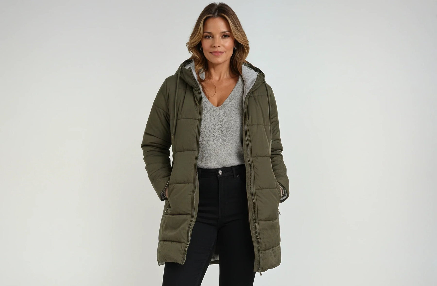 „Ég varð skemmtilega hissa á því hversu mjúkur og hlýr þessi jakki er. Sniðið passar mér fullkomlega og ermarnar eru í góðri lengd. Hann lítur afslappað út en samt nógu elegant til að fara út. Ég hef þegar fengið hrós fyrir hann!“