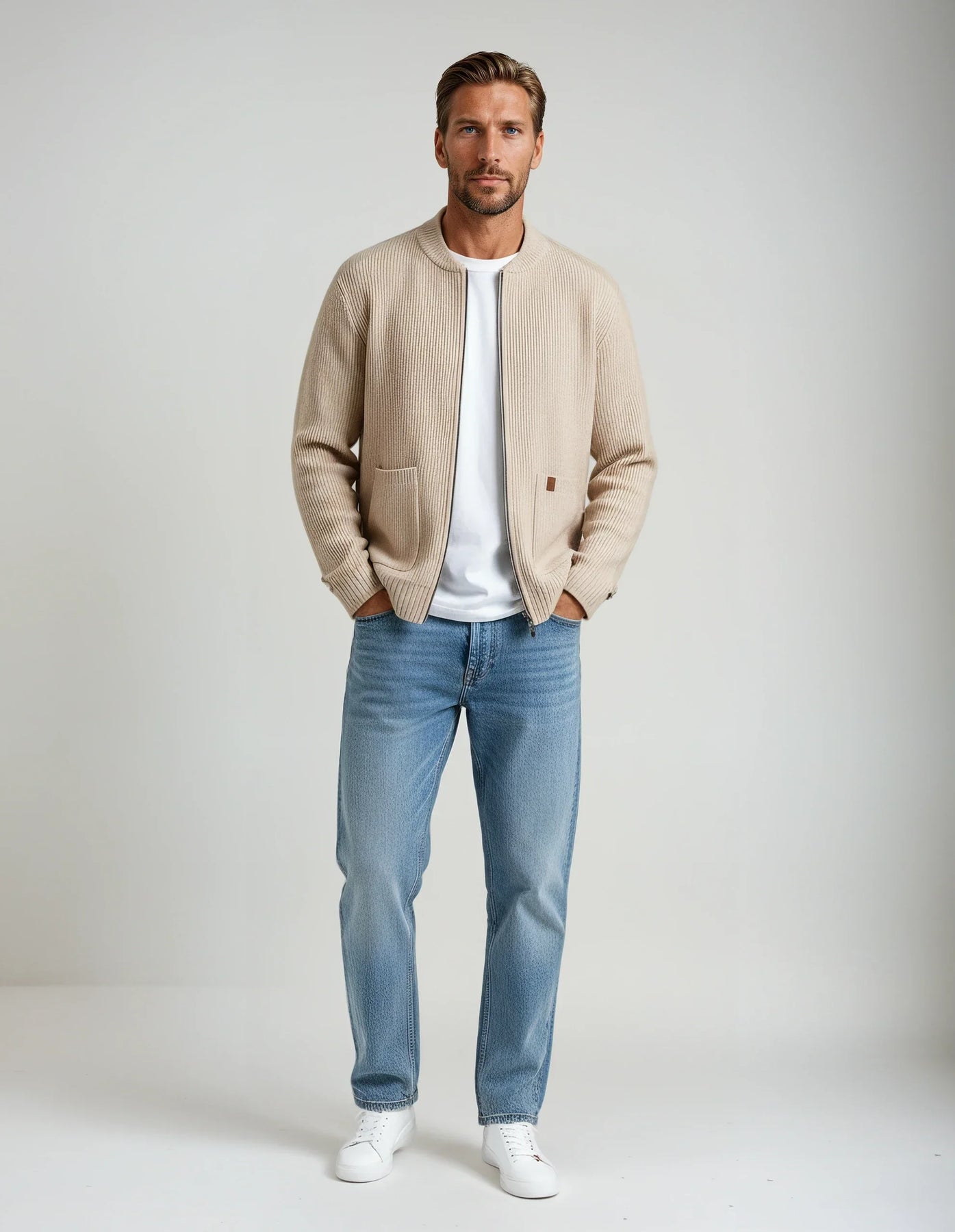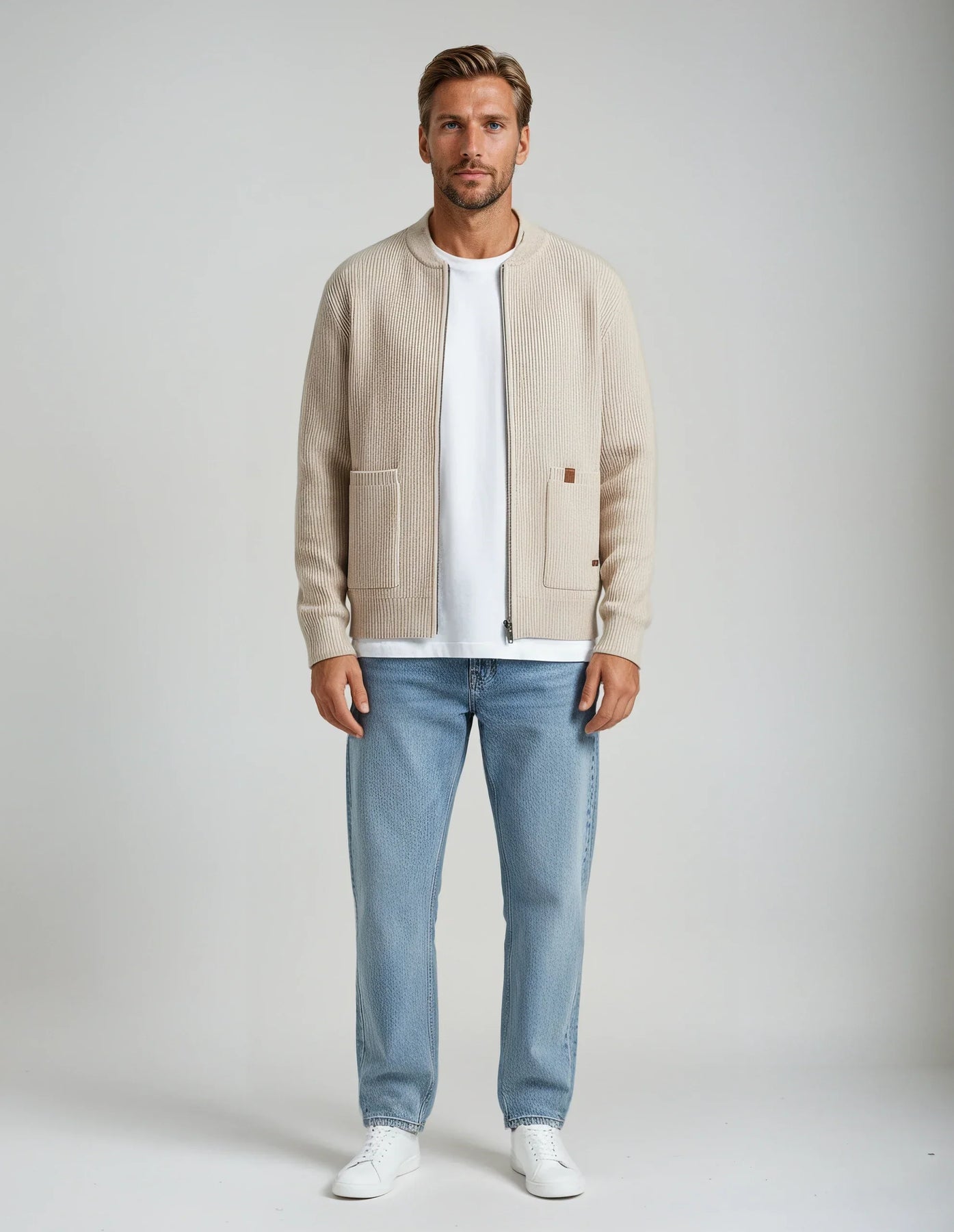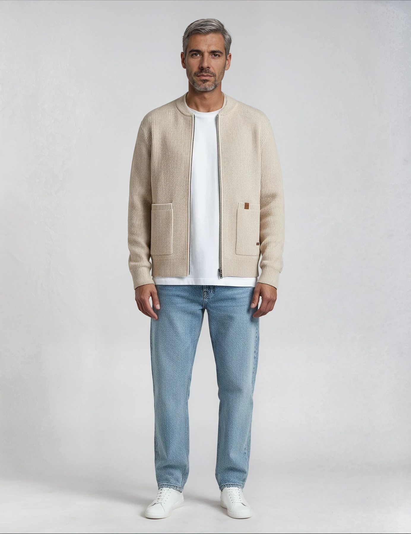 Mjúkur viðkomu með ríkri ríbbuðu áferð, þessi jakki líður eins og hann lítur út. Rennilásinn að framan og rúmgóðu vösunum veita honum daglega þægindi, á meðan strúktúruð vefnaðurinn heldur lögun sinni. Léttur, hlýr og ætlaður til að bera í lagum – þetta er jakkin sem þú munt ná aftur og aftur í.