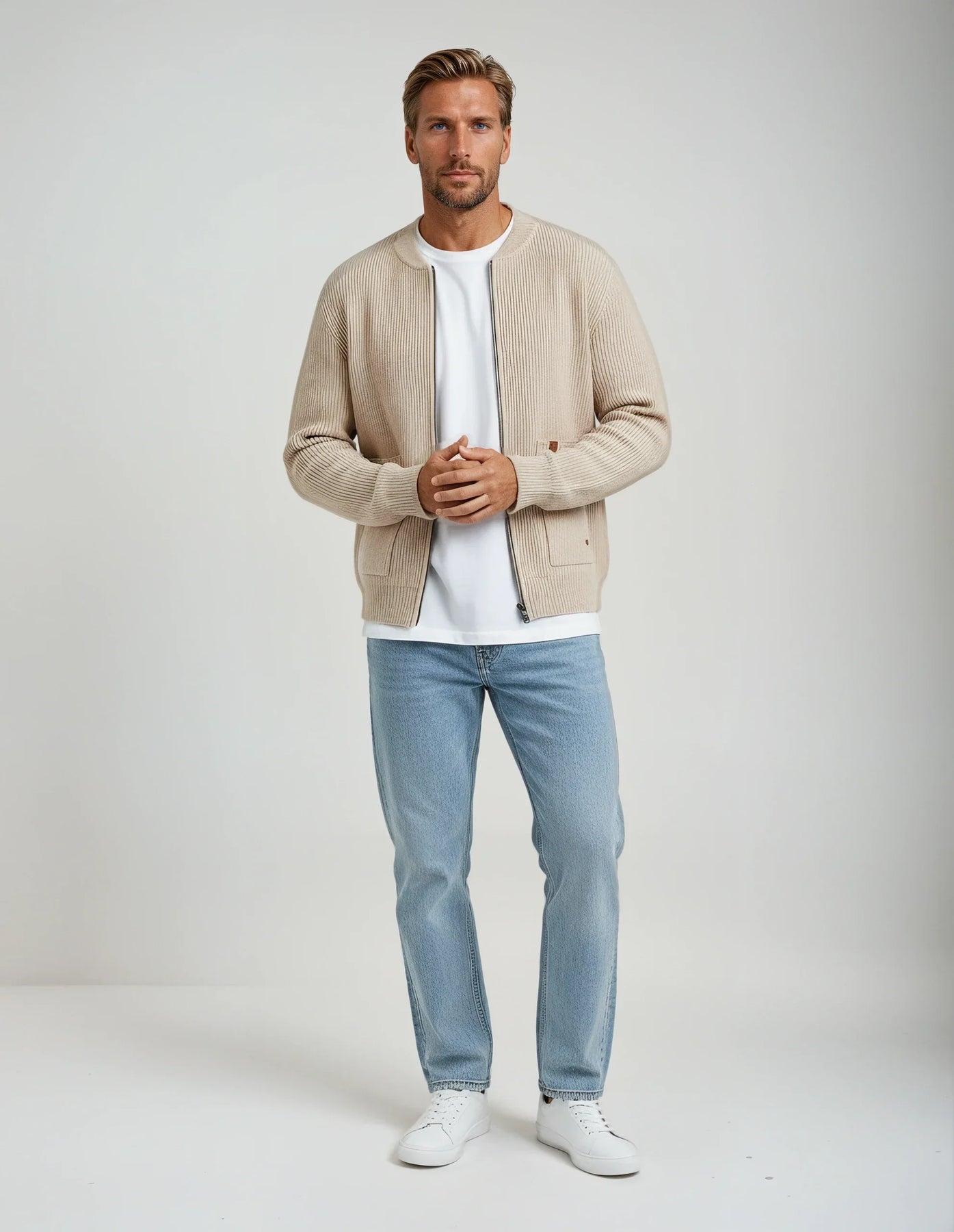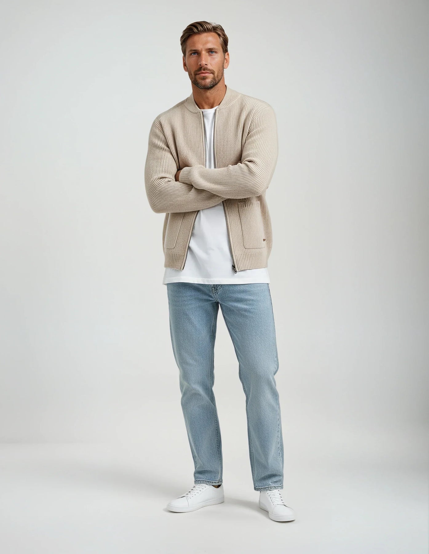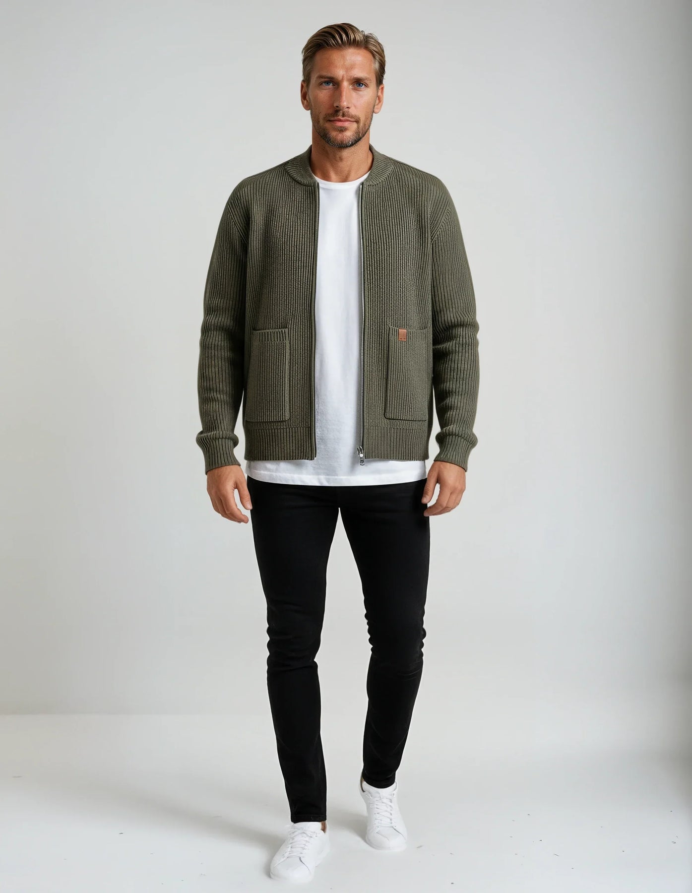 Mjúkur viðkomu með ríkri ríbbuðu áferð, þessi jakki líður eins og hann lítur út. Rennilásinn að framan og rúmgóðu vösunum veita honum daglega þægindi, á meðan strúktúruð vefnaðurinn heldur lögun sinni. Léttur, hlýr og ætlaður til að bera í lagum – þetta er jakkin sem þú munt ná aftur og aftur í.
