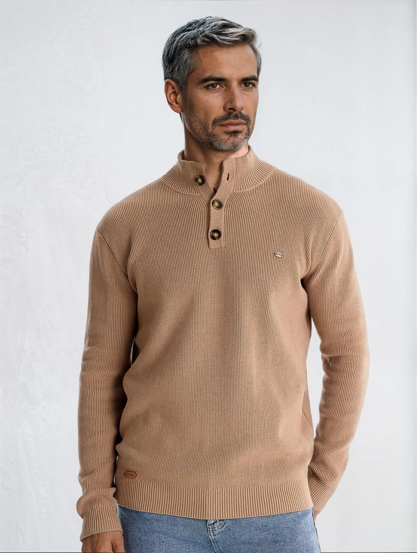 Þú veist hvað þú vilt: stílhrein, þægileg og hagnýt föt sem fegra útlit þitt. Kjarvalur herrapeysan með hnöppum sameinar tímalausa glæsileika með snjöllum smáatriðum og hámarks þægindum – fullkomin fyrir nútímamanninn, hvort sem er í daglegu lífi eða viðskiptalegum tilefnum.