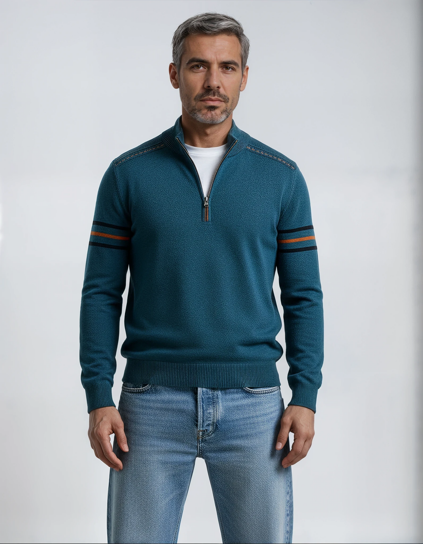 Úr einkennandi merínóull okkar, þessi peysa veitir notalega hlýju með léttum tilfinningu. Hún er hönnuð með hreinum hálsmáli með rennilás, áberandi saumum á öxlum og síðu venjulegu sniði, sem býður upp á fágaða þægindi fyrir daglegt notkun.