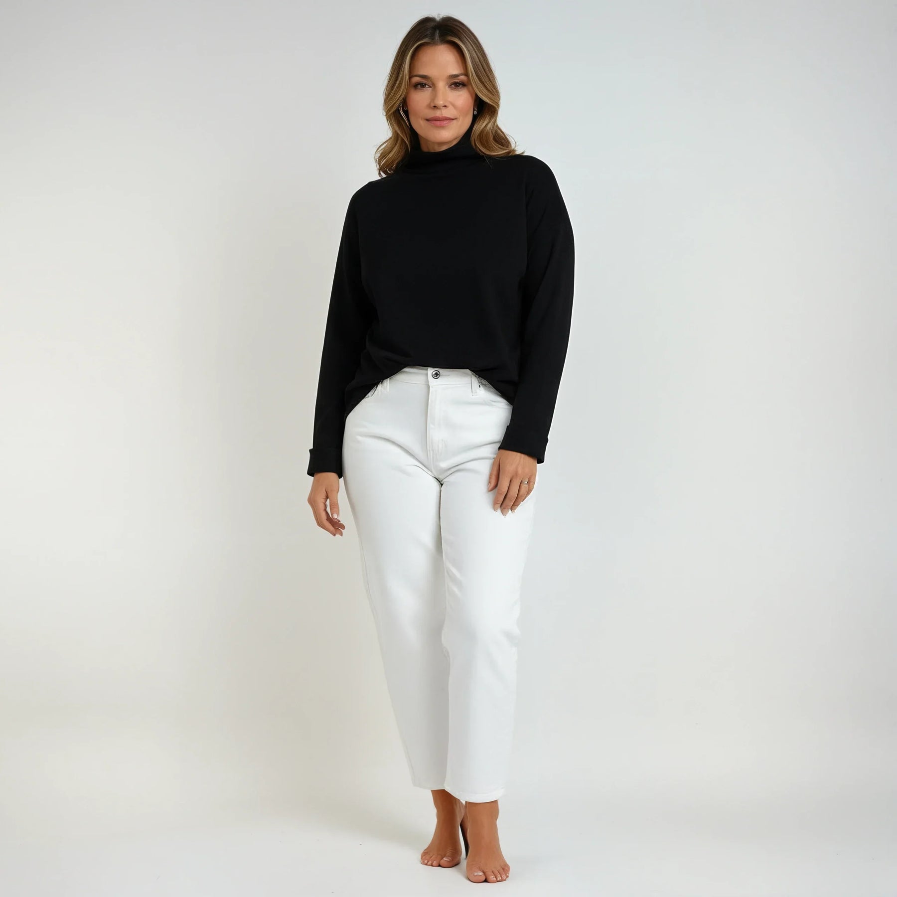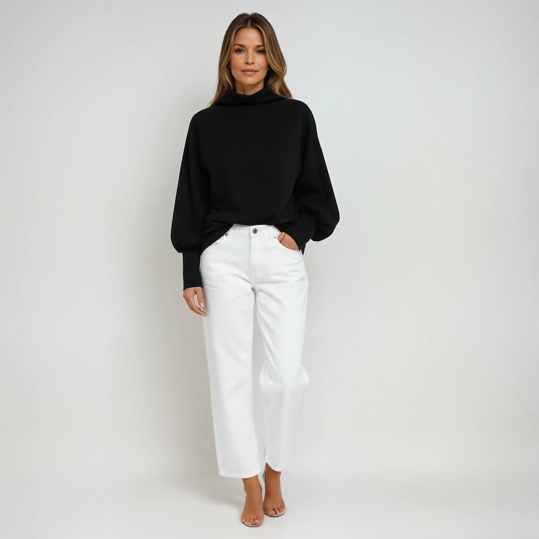 „Ég elska hversu hlý og þægileg þessi peysa er. Liturinn er fallegur og lífgar upp á fataskápinn minn fyrir haustið. Sniðið er afslappað en samt mjög flattering og rúllukraginn heldur mér hlýrri án þess að vera of þröngur. Algjör ný uppáhalds!“