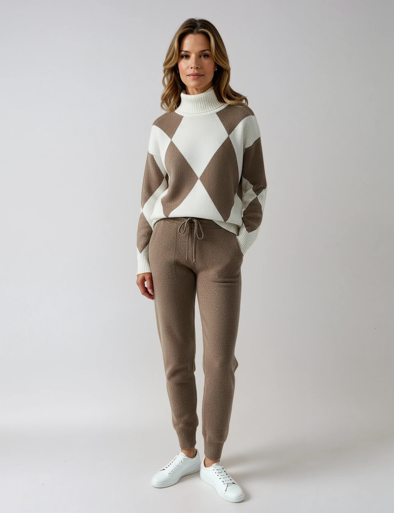 Glæsilegt tveggja hluta sett frá Giorgiu er hið fullkomna val fyrir konur sem vilja líta stílhreinar út og líða vel. Settið, sem samanstendur af glæsilegum topp og buxum, sameinar nútímalegan og klassískan stíl, fullkomið bæði fyrir formleg tilefni og frjálsleg útiveru.